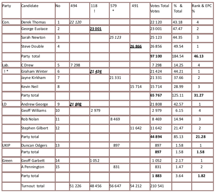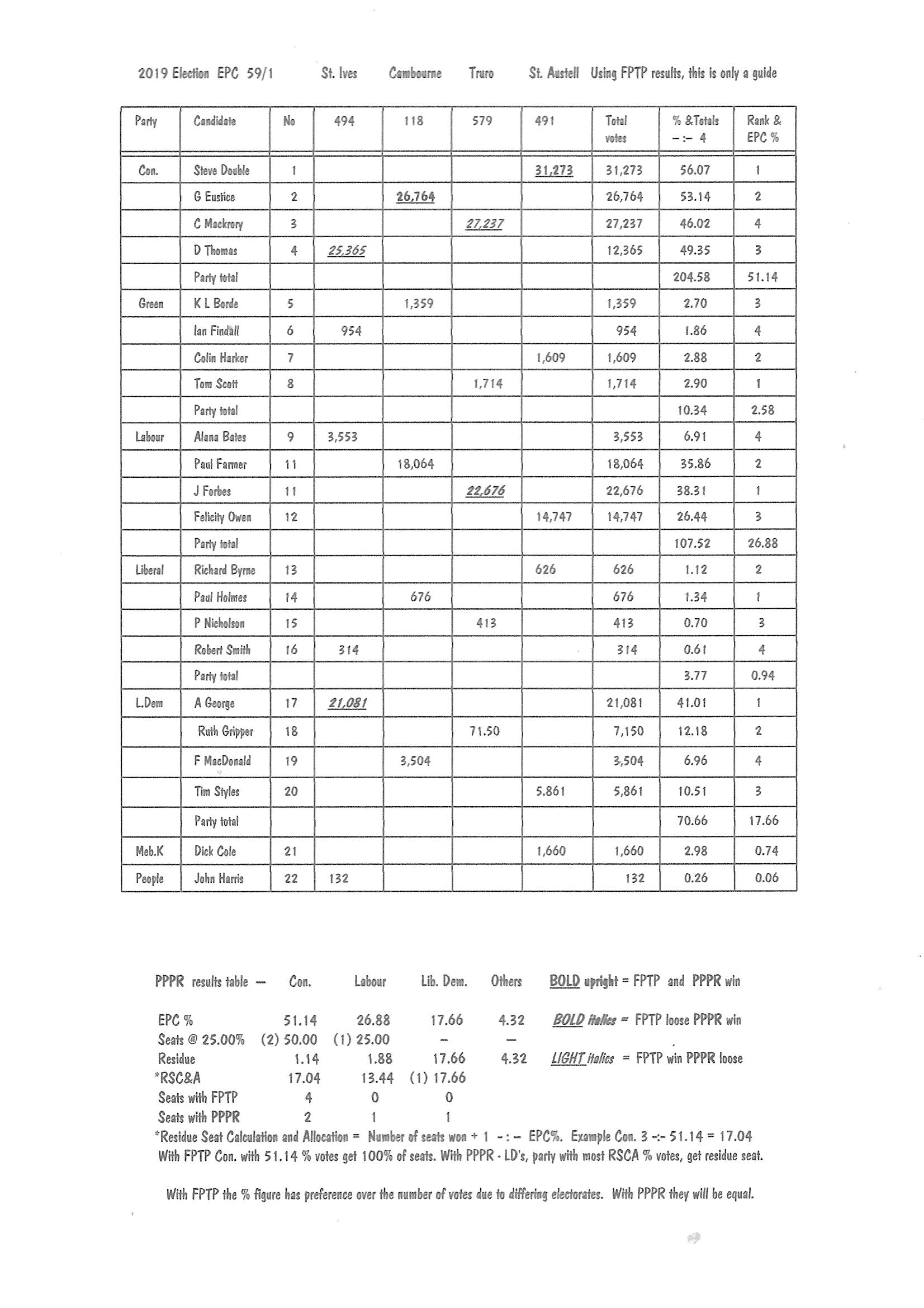 shown below in the EPC 59/1 West Cornwall 2017 FPTP/ PPPR results .